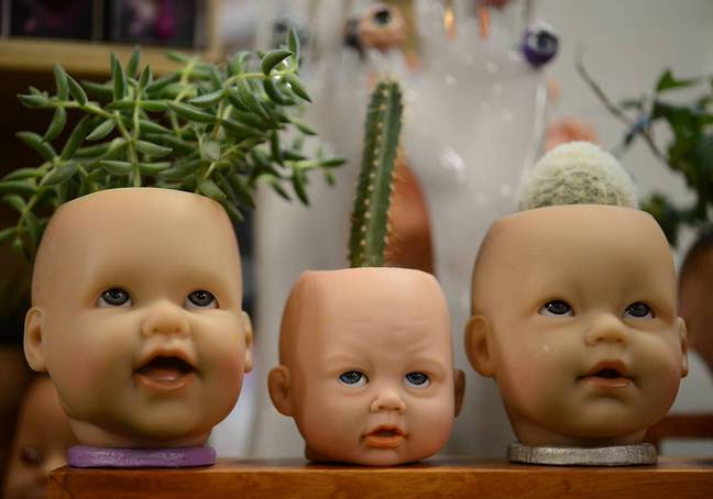 New Home Decor Trend Involves Recycling Dolls Heads As Planters