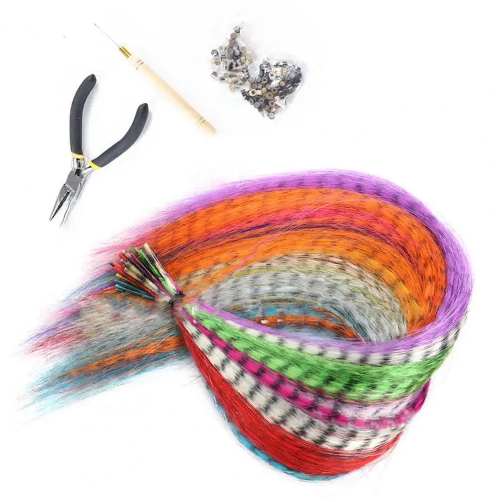 1set Feather Hair Kit Smooth With Crochet Hook Lightweight Multicolor Hair Extensions Feathers For Home